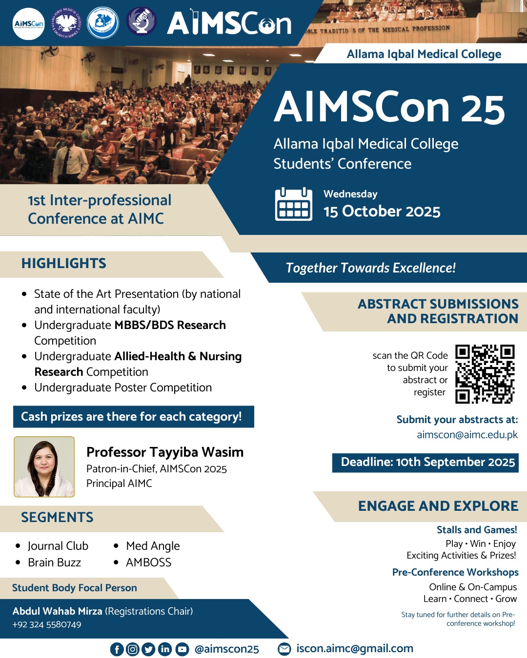 It is with my utmost honor that I welcome you at Allama Iqbal Medical College affiliated with Jinnah Hospital Lahore on the behalf of our esteemed faculty, talented alumni and ambitious students. Whilst striving for intellectual growth, clinical skills, and instillation of empathy in our pupils, we have made our way to one of the top medical institutions in Pakistan, attracting the brightest minds from all over the SAARC region. Since our inception in 1975, we have been directing all our energies towards delivering standardized and quality education, and producing proficient healthcare professionals, independent thinkers and active global citizens.
